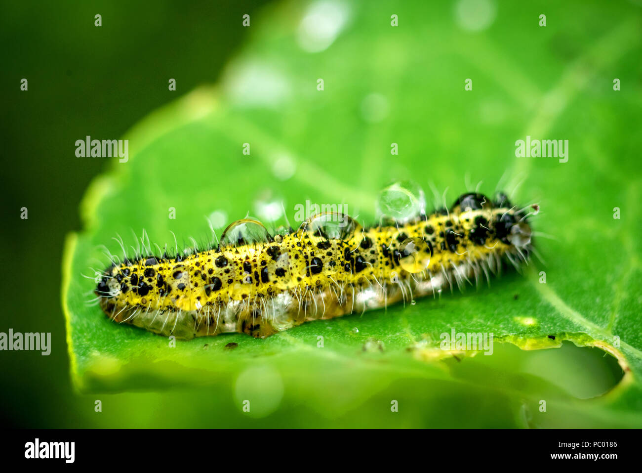 A Large White Caterpillar Or Pieris Brassicae Taking On Moisture After A Dry Spell Stock Photo Alamy