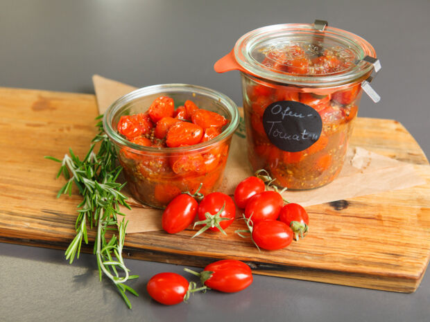 Web Öl in eine kleine Pfanne giessen. So gehts Geben Sie die vorbereiteten ganzen Tomaten in die sterilisierten Einkochgläser und übergießen Sie die Früchte mit.